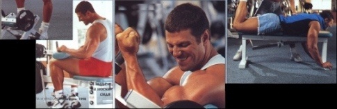 | Жим штанги на скамьес наклоном вверх Жим гантелей Тяга на блоке книзу Тяга штанги в наклоне Жим гантелей Пресс: подъемы ног в висе "Скручивания" "Скручивания" споворотом туловища |